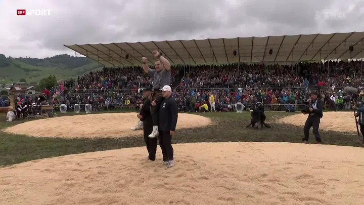 Schwingerkönig Joel Wicki triumphierte zuhause in Hasle am Luzerner Kantonalen. Der Sörenberger, dem im Schlussgang ein Gestellter zum vierten Sieg in seinem Heimatkanton gereicht hätte, musste sich neuneinhalb Minuten gedulden, ehe ihm gegen Michael Gwerder der entscheidende Angriff gelang.