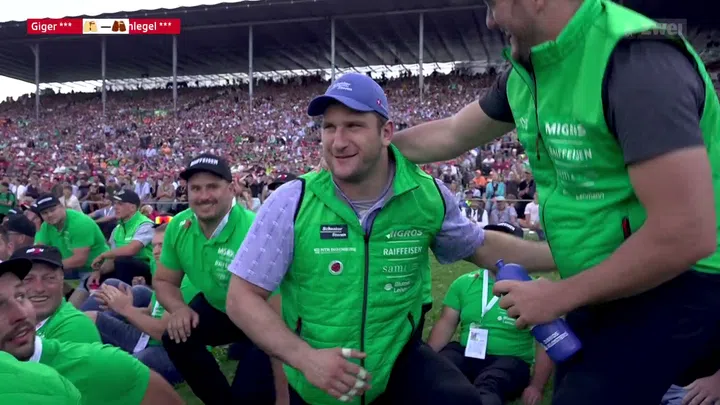 Als der 8. Gang schon weit fortgeschritten war, verkündete Speakerin Fabienne Gyr endlich das finale Duell: Giger gegen Schlegel. Im Schlussgang auf der Schwägalp hatte es diese Paarung zuletzt gegeben. Vor zwei Wochen endete der Kampf gestellt. So auch am ESAF. Schlegel war während der 16 Minuten näher am Sieg, keiner der beiden suchte die Entscheidung jedoch mit letzter Konsequenz.