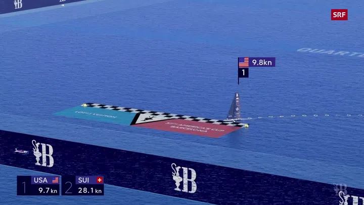 Die Schweizer Jacht sank bei schwachem Wind von den Foils, die das Schweben über die Wellen möglich machen, ins Wasser, war mit entsprechend geringer Geschwindigkeit unterwegs und kam zwischenzeitlich sogar zum Stillstand. Das Ziel erreichten die Schweizer mit 2:58 Minuten Rückstand.