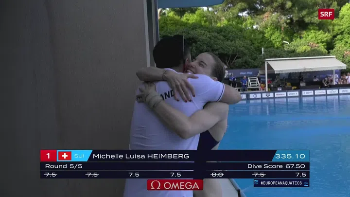 Nach der Bronzemedaille vom 1-m-Brett am vergangenen Freitag hat Michelle Heimberg bei der EM in Antalya am Dienstag nachgelegt. Von 3 Metern überzeugte die Aargauerin zuerst am Morgen in der Qualifikation, in welcher sie den Bestwert aufstellte. Am Nachmittag legte sie dann nach einem soliden Start einen Steigerungslauf hin und sprang letztlich zur Goldmedaille.