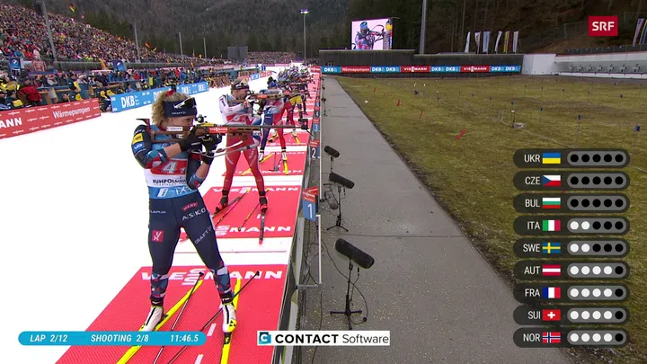 Die Schweizer Biathletinnen haben in der Weltcup-Staffel in Ruhpolding das Podest nur knapp verpasst. Amy Baserga, Aita Gasparin, Elisa Gasparin und Lena Häcki-Gross klassierten sich in Oberbayern auf dem 4. Rang. Für die Equipe wäre gar noch mehr als das beste Saisonresultat drin gelegen: Vor dem letzten Schiessen kämpfte Häcki-Gross um einen Top-3-Rang, 3 Nachlader machten ihr aber einen Strich durch die Rechnung. So kam die Schweiz hinter Norwegen, Deutschland und Italien mit lediglich 2,8 Sekunden Rückstand aufs Podest ins Ziel. Mit solchen Leistungen könnte es für die Schweizer Staffel diese Saison aber noch zu mehr reichen, schon nächste Woche in Antholz (ITA) winkt die nächste Chance. Zuvor steht am Sonntag in Ruhpolding noch der Massenstart auf dem Programm (ab 14:40 Uhr live bei SRF).