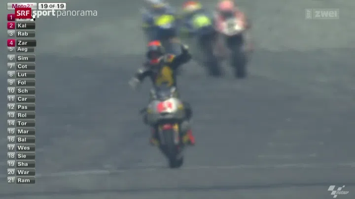 Für Tom Lüthi verlief das Rennen in Malaysia nicht nach Wunsch. Am Start büsste der Berner, der zuletzt in Australien Zweiter geworden war und davor in Japan gewonnen hatte, gleich vier Positionen ein. Am Schluss musste sich Lüthi mit Platz 8 zufrieden geben. Im Schweizer Duell um den vierten WM-Gesamtrang liegt Lüthi gegenüber Aegerter noch um sieben Punkte vorne (169:162).