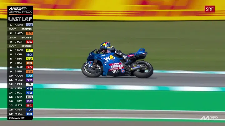 - Alex Marquez (ESP) gewinnt das MotoGP-Rennen in Malaysia.