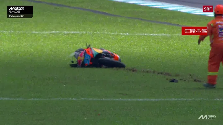 Rote Flagge statt geplanter Rennstart zur Moto3-Konkurrenz auf der malaysischen Halbinsel. Bei der drittletzten WM-Station 2025 ist Noah Dettwiler heftig gestürzt, verletzte sich schwerwiegend und wird aktuell im Spital in Kuala Lumpur behandelt.