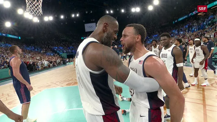Mit dem Rücken zur Wand fanden die US-Amerikaner aber doch noch mal einen, oder besser zwei zusätzliche Gänge. Besonders das Trio Steph Curry, LeBron James und Kevin Durant holte für den 16-fachen Olympiasieger mit teils genialen Aktionen die Kohlen aus dem Feuer. Curry war mit 36 Punkten klar bester Skorer auf dem Parkett.