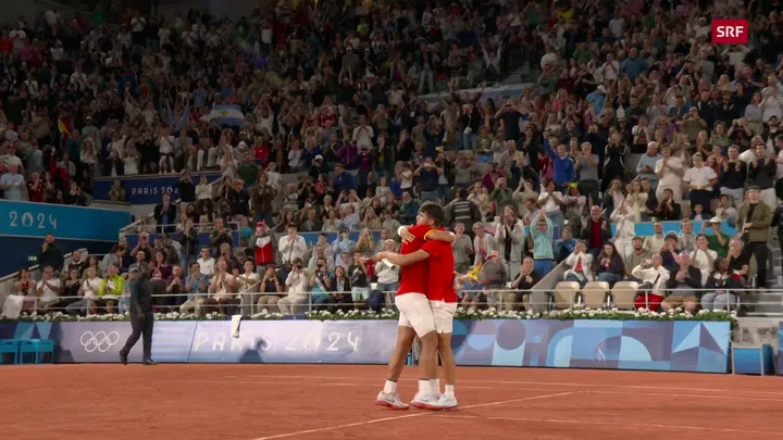 Rafael Nadal und Carlos Alcaraz sind erfolgreich ins olympische Doppelturnier gestartet. Gegen die an Nummer 6 gesetzten Argentinier Maximo Gonzalez und Andres Molteni hiess es nach 1:47 Stunden 7:6 (7:4), 6:4 für das spanische Duo. Ob Nadal in Paris auch im Einzel an den Start gehen wird, ist wegen einer Oberschenkelblessur unklar. In der 1. Runde würde am Sonntag Marton Fucsovics (HUN) warten. Carlos Alcaraz hatte seine Erstrunden-Partie im Einzel bereits am Nachmittag gewonnen. Der frischgebackene Wimbledon-Champion bezwang Hady Habib (LIB/ATP 275) in 70 Minuten 6:3, 6:1.
