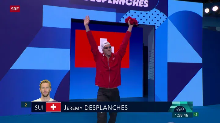 Im Vorlauf war Desplanches noch auf den 5. Rang geschwommen. Kurz darauf folgte die freudige Gewissheit: Die Zeit des Schweizers von 1:58,46 Minuten bedeutete Gesamtrang 9 in den Vorläufen und somit die Qualifikation für den Halbfinal der Top 16. Dieser markierte das Ende von Desplanches' Einzel-Schwimmkarriere. Am Samstag steht als ultimativ letzter Wettkampf für ihn die Staffel über 4x100-m-Lagen an.