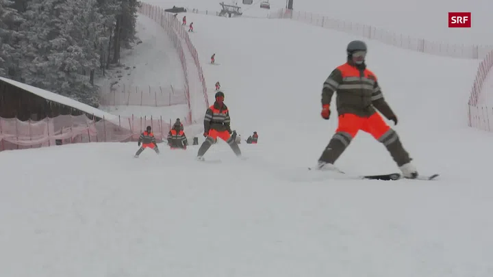 Das Rennwochenende in Adelboden fordert wie immer den tatkräftigen Einsatz zahlreicher Helfer am Berg. Aufgrund des schlechten Wetters waren zusätzlich zu den üblichen Arbeiten einige Rutschkommandos vonnöten, um dem Neuschnee während der Woche Herr zu werden.