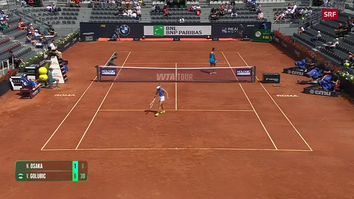Nach dem ersten Durchgang konnte sich Viktorija Golubic (WTA 87) gute Chancen auf ein Weiterkommen in Rom ausrechnen. Die 32-jährige Schweizerin gewann den Startsatz gegen die Japanerin Naomi Osaka (WTA 48) mit 6:2. Golubic nahm ihrer Gegnerin zweimal den Service ab und liess sich selbst nie breaken.