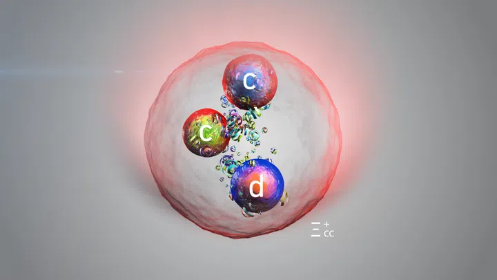 Protonen gehören ja – wie die Neutronen und Elektronen- zu den Bausteinen, die in jedem Atom stecken. Also in uns und in allem um uns herum. Protonen sind aber nicht die kleinsten Teilchen, die es gibt. Sie sind zusammengesetzt aus den Quarks, die in verschiedenen Varianten vorkommen. Das im Cern neu entdeckte Teilchen ist ähnlich gebaut wie das Proton: Es besteht ebenfalls aus drei Quarks – und zwar aus einem sogenannten «Down»-Quark, wie es das Proton ebenfalls hat. Und dann noch aus zwei exotischen Quarks, die «Charm»-Quarks heissen. Damit ist das neu entdeckte Teilchen vier mal schwerer als ein Proton.