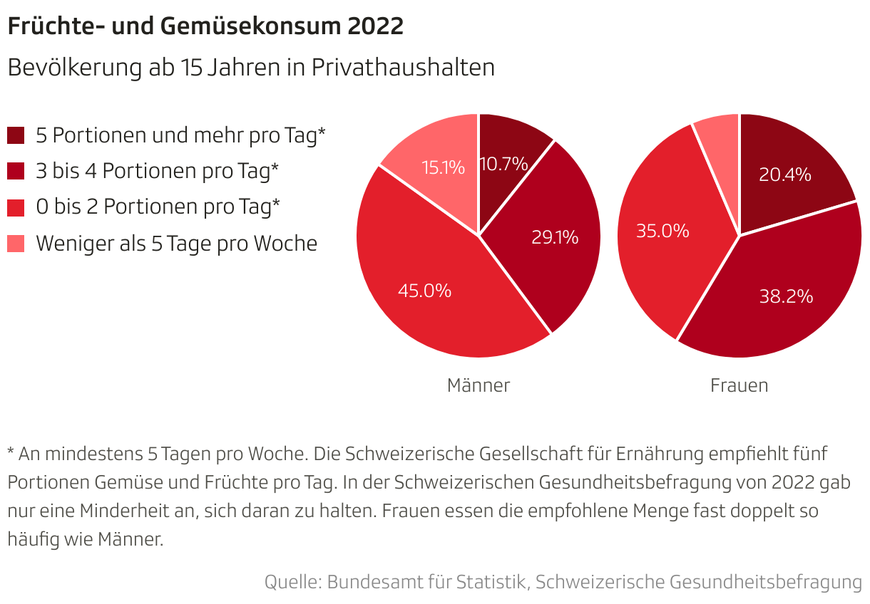 Zudem stelle sich die Frage, wie spezifisch Ernährungsempfehlungen formuliert werden sollten. «Fünf Portionen Gemüse und Früchte zu empfehlen, ist sicher vertretbar», so der Ernährungswissenschaftler. «Aber die Zahl ‘fünf’ ist dabei vermutlich nicht matchentscheidend, sondern eher als Grössenordnung zu verstehen.»