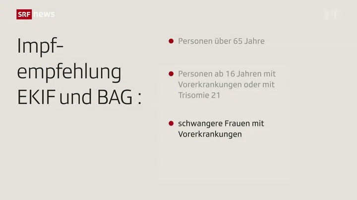 Schon eine einzelne Covid-Impfdosis schütze vor schweren Krankheitsverläufen. Deshalb sollen sich auch diesen Herbst besonders gefährdete Personen impfen. Das empfiehlt das Bundesamt für Gesundheit (BAG) und die Eidgenössische Kommission für Impffragen. Für alle anderen Personen gilt diese Empfehlung nicht. Denn die Impfung schütze laut BAG zwar zuverlässig vor einer schweren Erkrankung, aber vor einer Infektion oder vor einer Übertragung nur bedingt.
