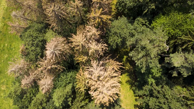 Waldbrände und Borkenkäfer als wichtigste Treiber: Zwei Arten von Störungen stechen besonders hervor: Waldbrände und Insektenbefall, vor allem durch Borkenkäfer. Borkenkäfer befallen vorwiegend Nadelbäume wie Fichten. Sie legen ihre Eier unter der Rinde ab und unterbrechen dort den Nährstofftransport des Baumes. Wenn sich die Käfer stark vermehren, können ganze Waldbestände absterben. «Borkenkäfer profitieren gleich doppelt vom Klimawandel: Trockenheit schwächt die Abwehrkräfte der Bäume, und wärmere Temperaturen beschleunigen ihre Entwicklung», so Grünig. Auch das Risiko von Waldbränden steigt, so die Studie. Besonders in heissen und trockenen Jahren nehme die betroffene Waldfläche deutlich zu. «Extreme Jahre, die heute vielleicht alle zehn bis zwanzig Jahre auftreten, könnten gegen Ende des Jahrhunderts fast jedes Jahr vorkommen», so der Experte.
