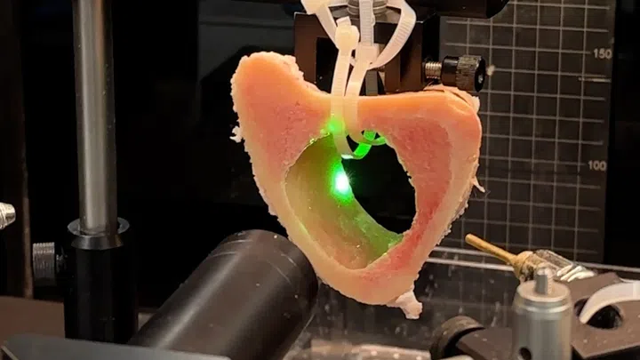 Tiefer als bisher: Das Team um Ferda Canbaz von der Uni Basel schaffte es, mit einem Laser 4.5 Zentimeter tief in einen Knochen zu schneiden. Eine derart grosse Schnitttiefe war bislang nicht möglich. In der Medizin kommen Laser heute vor allem bei weichen Geweben zum Einsatz, zum Beispiel in der Augenchirurgie, bei Hautbehandlungen aber auch zum Zertrümmern von Nieren- oder Gallensteinen. Bei harten Geweben wie Knochen nutzt man Laser erst wenig: Heute sind nur Schnitte von zwei bis drei Zentimetern Tiefe möglich – für Einsätze in der Kiefer- oder Gesichtschirurgie.