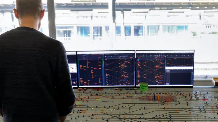 Normalerweise läuft der Zugbetrieb automatisch. Der Computer spielt Bahnhofsvorstand. Nur bei Ereignissen, die nicht dem Fahrplan entsprechen, greift die Fahrdienstleiterin ein.
